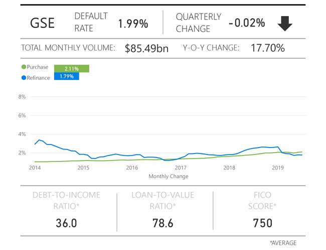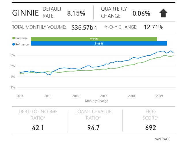 The MMDI segments loans by agency (Freddie, Fannie, and Ginnie). Figure 1 provides the quarter-end index results for government-sponsored enterprises (GSE) loans (segmented by purchase and refinance) for the second quarter of 2019. Figure 2 provides the index results for Ginnie Mae loans (segmented by purchase and refinance) for the same time period.