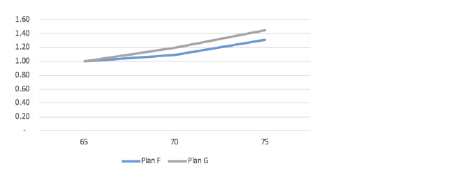 • In the case of Plan G and Plan HDF, reflecting the steeper slope in the rate schedule (relative to Plan F) allows for more competitive rates at the younger ages (as noted above), particularly the typical target market of ages 65 to 67, while still pricing for overall required rate levels.